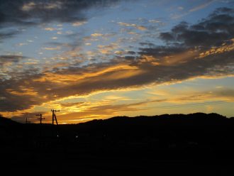 巻雲や巻積雲が出ると徐々に天候が悪化することが多いとの事。「うろこ雲や筋雲が出たら段々天気が悪くなる。」と覚えておこう。そういえば予報では週末はまた大荒れとか言っていた。それにしてもオレンジに輝く雲を見ているとホッとする。