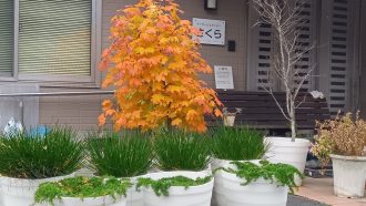 その手前は芝桜の鉢。これも一度切ったり、抜いたりして、さっぱりさせたんだが、ぐんぐん伸びて青々としてきた。たくましい♪来春も、鉢にてんこ盛りの花を咲かせて欲しいなあ。
