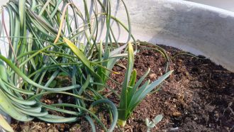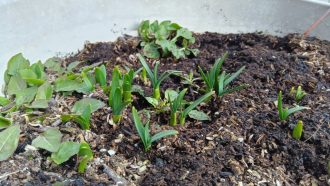 芽を出して来たが、品種によって成長が違う。どれがどんな花を付けたか良く覚えていない。咲いたら分るだろう、って。