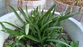 鉢植えの水仙の今日の状態を記録に残しておこう。
